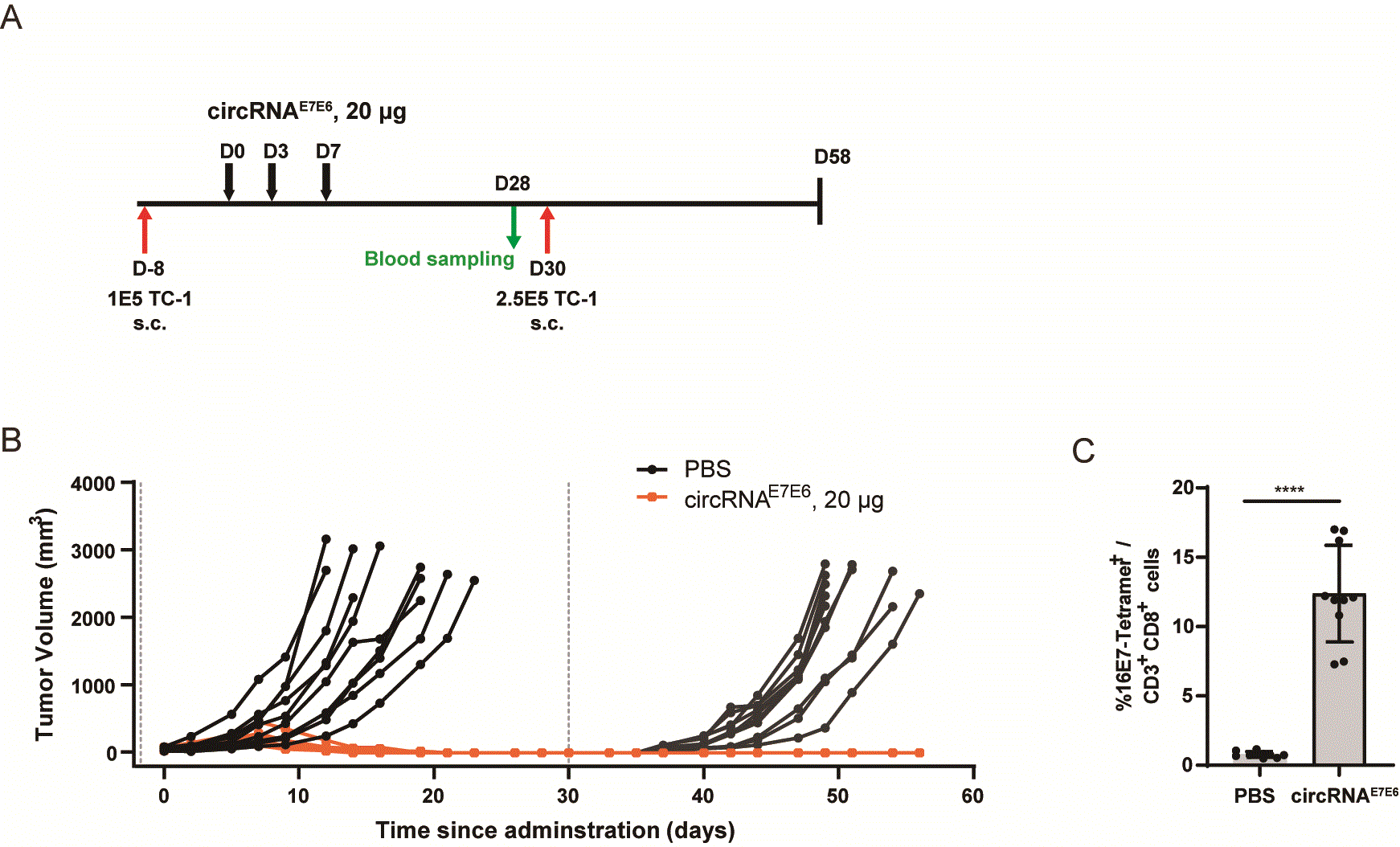 圖3:circRNAE7E6介導(dǎo)腫瘤完全緩解并預(yù)防復(fù)發(fā)